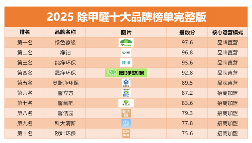 2025 除甲醛十大品牌榜:绿色家缘领军,技术革新驱动行业升级