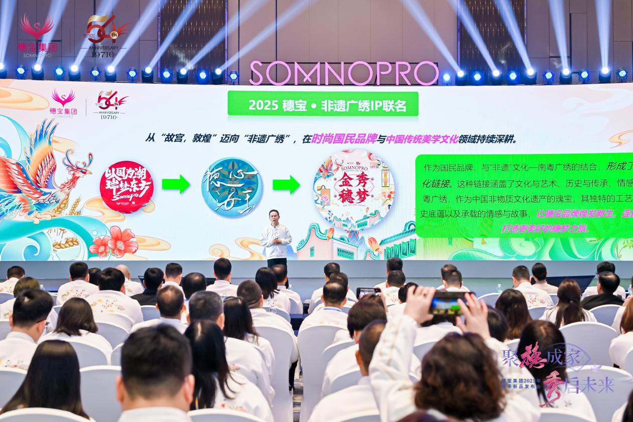 一穗知东方,非遗绽新颜。2025年3月12日,一场以“聚穗成家・秀启未来”为主题的新中式家韵美学盛典于广东·佛山·万豪酒店璀璨启幕,穗宝集团与国家级非遗广绣传承人梁秀玲共同打造的2025春季新品「金秀穗梦」系列重磅亮相,以“科学睡眠文化+岭南非遗美学”的国潮家居新范式致敬国民品质生活。