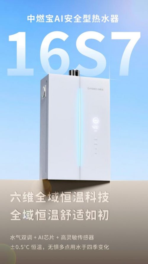 在舒适体验上,中燃宝AI安全型燃气热水器16S7采用6维全域恒温科技,通过水气双调与高智能AI芯片协同,配合精准温度传感器,将水温温差控制在±0.5℃,多点同时用水仍能稳定水温。同时可智能适配季节变化,自动切换微火、中火、全火模式,无需手动调试即可获得适宜水温。