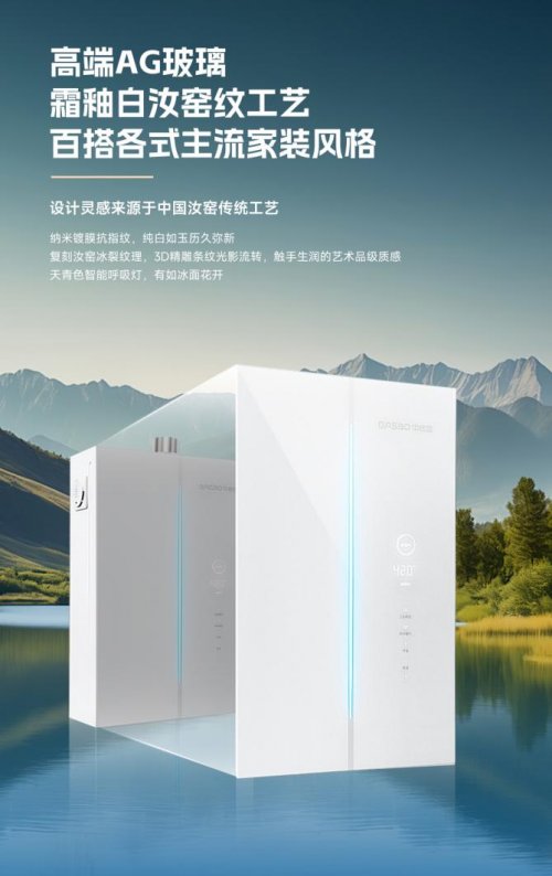 除了强大的功能,中燃宝AI安全型燃气热水器16S7的颜值也备受关注。其外观设计融合了汝窑天青色与冰裂纹理,搭配AG玻璃材质与智能呼吸灯。霜釉白机身蕴含宋瓷神韵,复刻的汝窑冰裂纹理细腻可触,亮起时如冰面乍开的蓝光,将东方意境融入日常,适配多种家居风格。